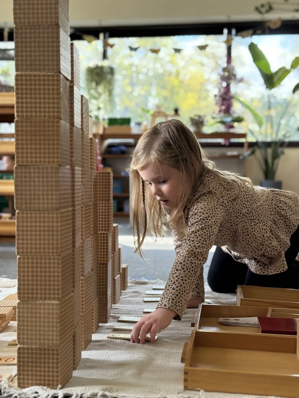 Direct personal contact with physical objects and tactile models bring complex math and science concepts to life. Before students ever memorize 3 x 4 = 12, they touch and see 3 rows of 4. The Montessori Method naturally leads the child from concrete experimentation to abstract critical thinking.